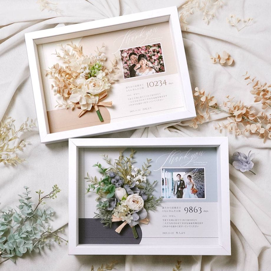 あまり大きいものだと持ち運びが大変ですがだからといって記念に残るものだから妥協はしたくない!今回はそんなおふたりのためのおすすめ両親プレゼントをご紹介します♡
