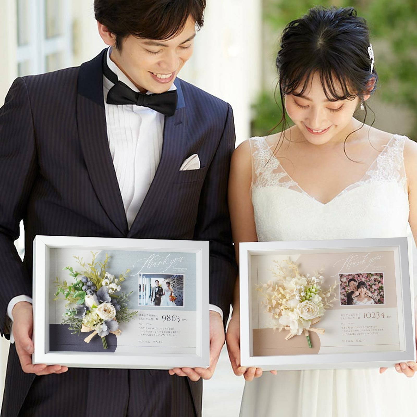 なんと大判に印刷したパネルにして贈呈!目録みたいでナイスなアイデアです!!もちろん本物は後日ご両親に渡されました。これなら二度うれしいですよね♡