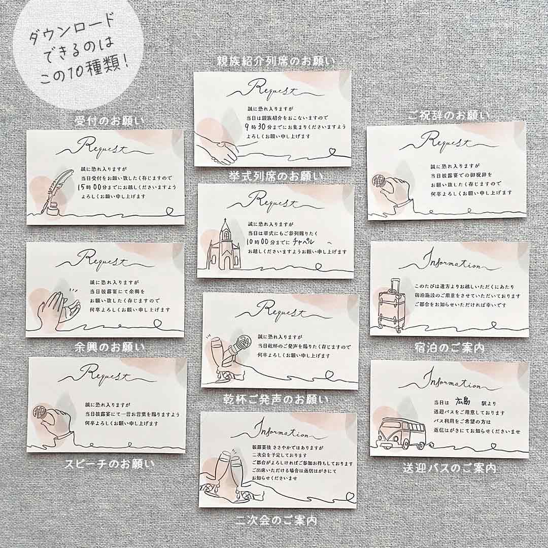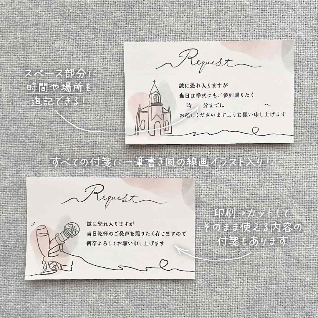 お願いする内容に合わせてオシャレな線画イラストが入っています♪