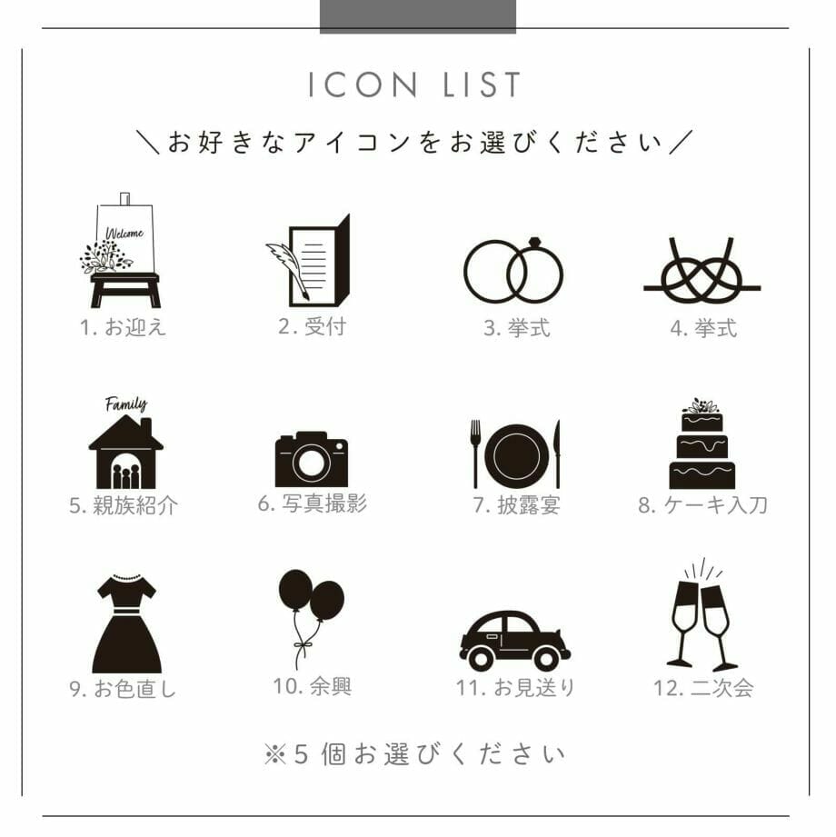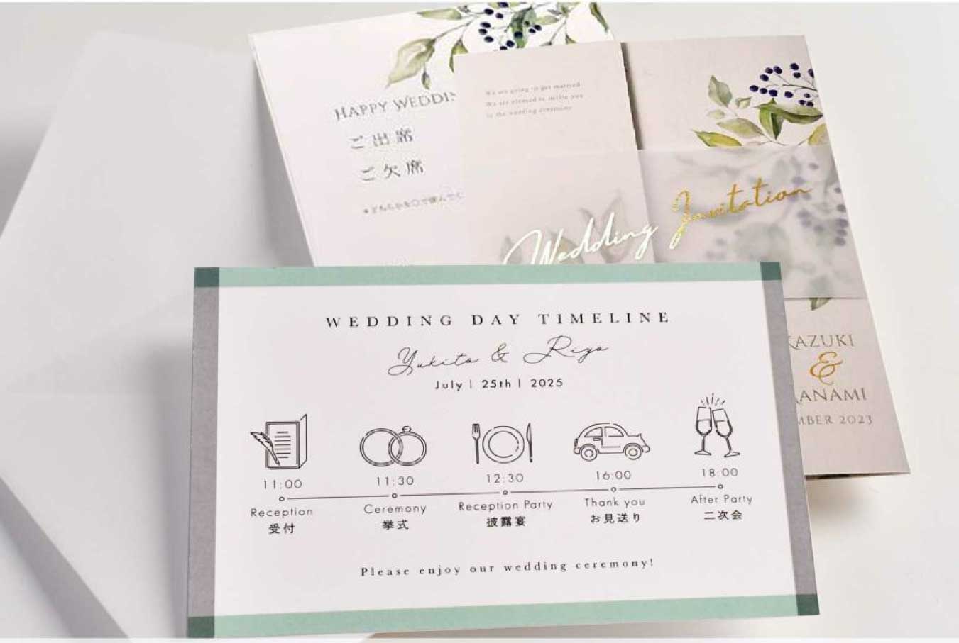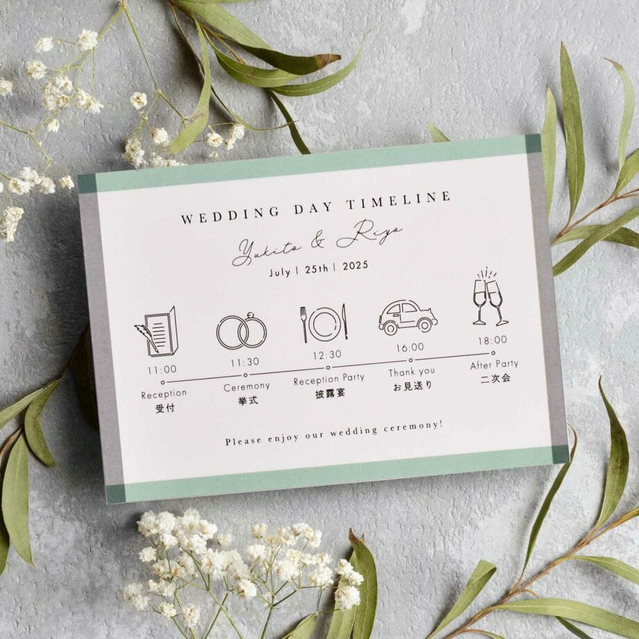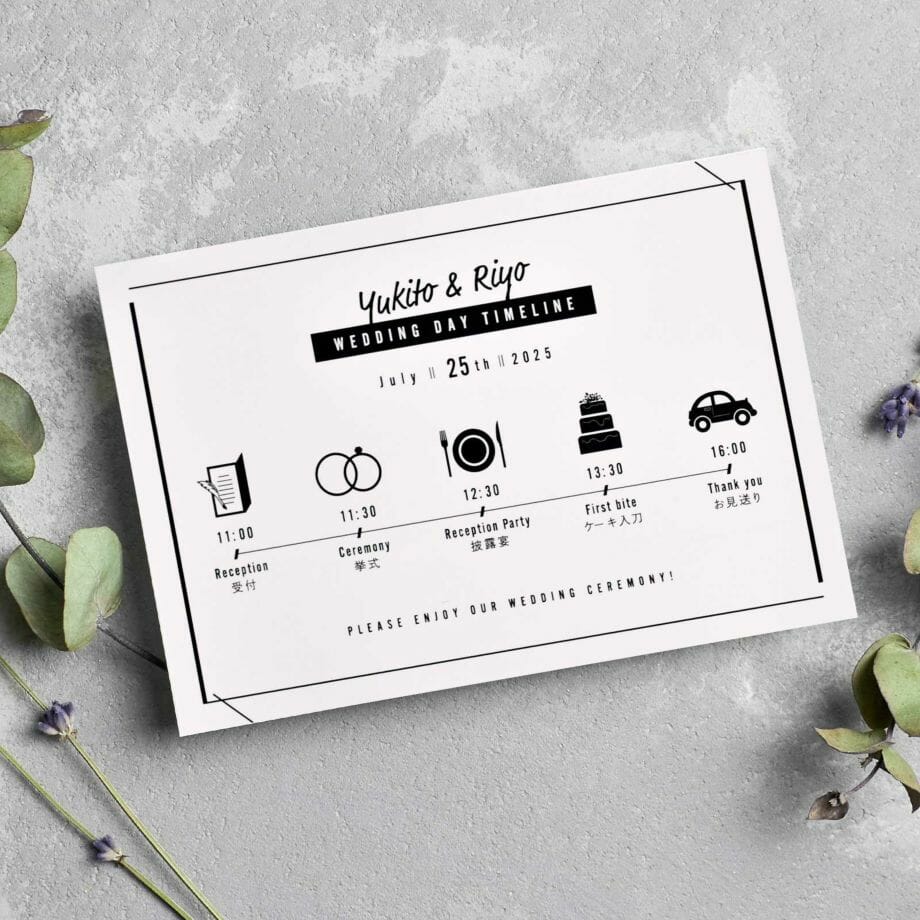 一目で結婚式のスケジュールがわかるので招待状に同封しておけばゲストも安心です♪