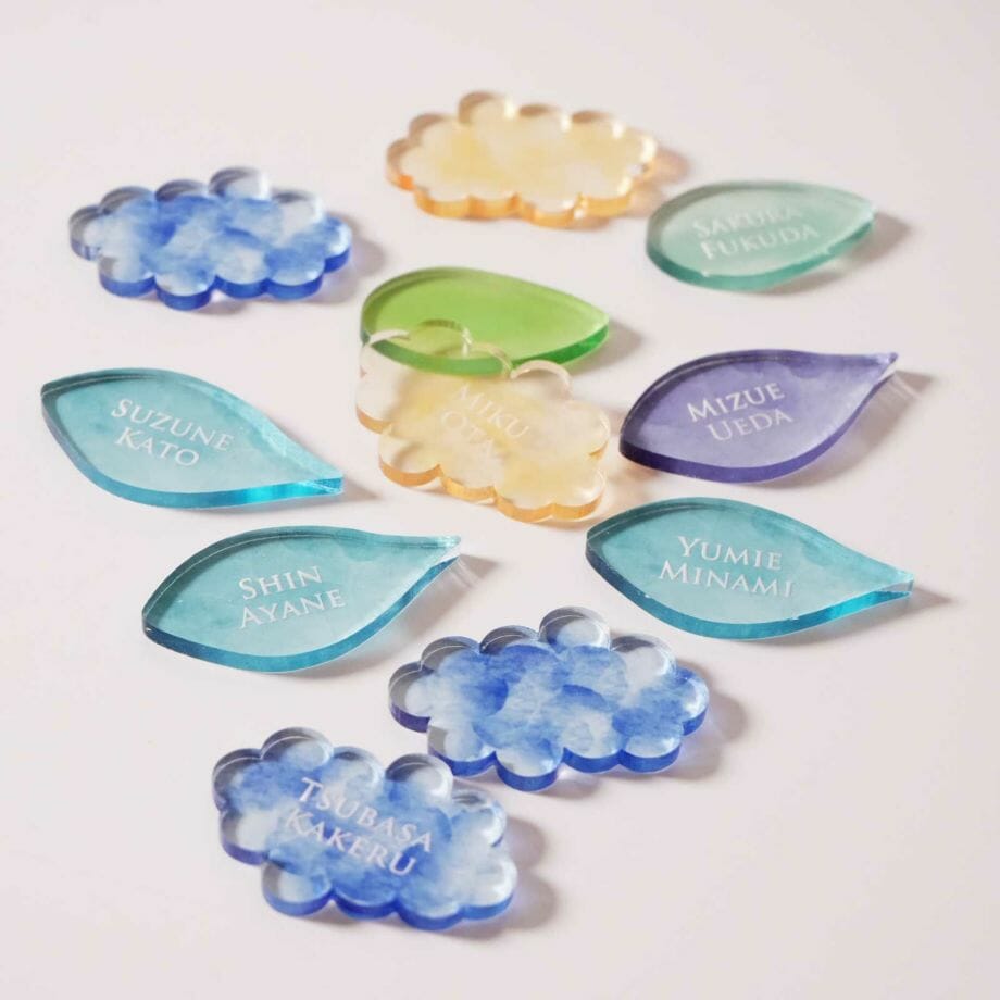 水彩風のゲスト用アクリルピースの形は全3種類、ランダムに刻印いたします!