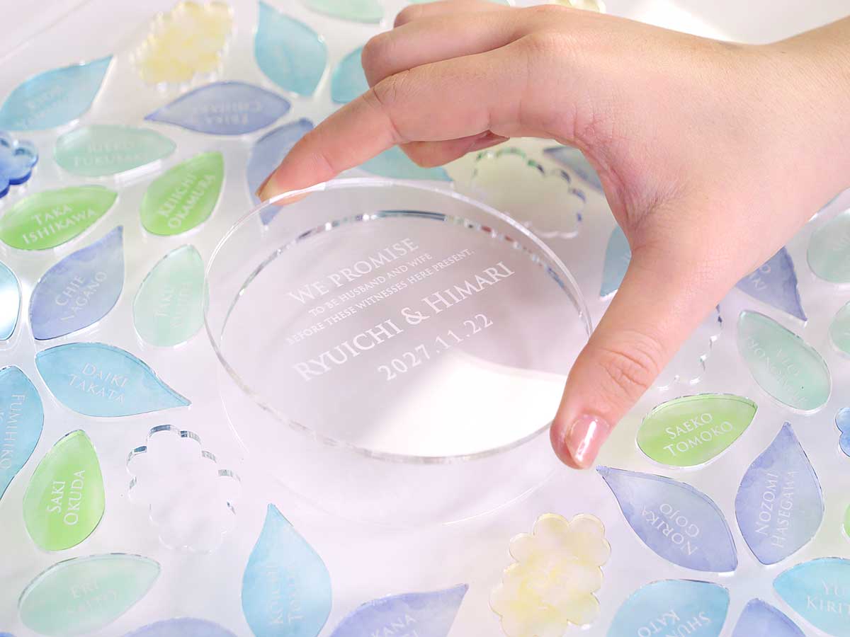 本日は先日発売となった <ゲスト参加型>結婚証明書アクリルピース「リース」について