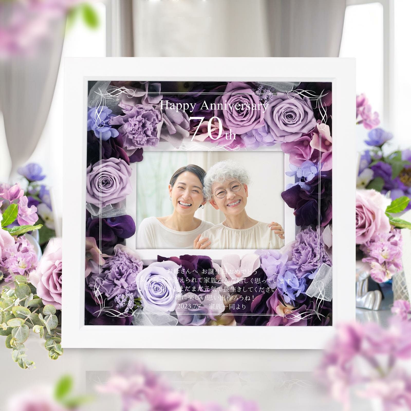 長寿祝いの大切な節目をお祝いするギフトには、お花たっぷりおしゃれな写真立てはいかがでしょうか?