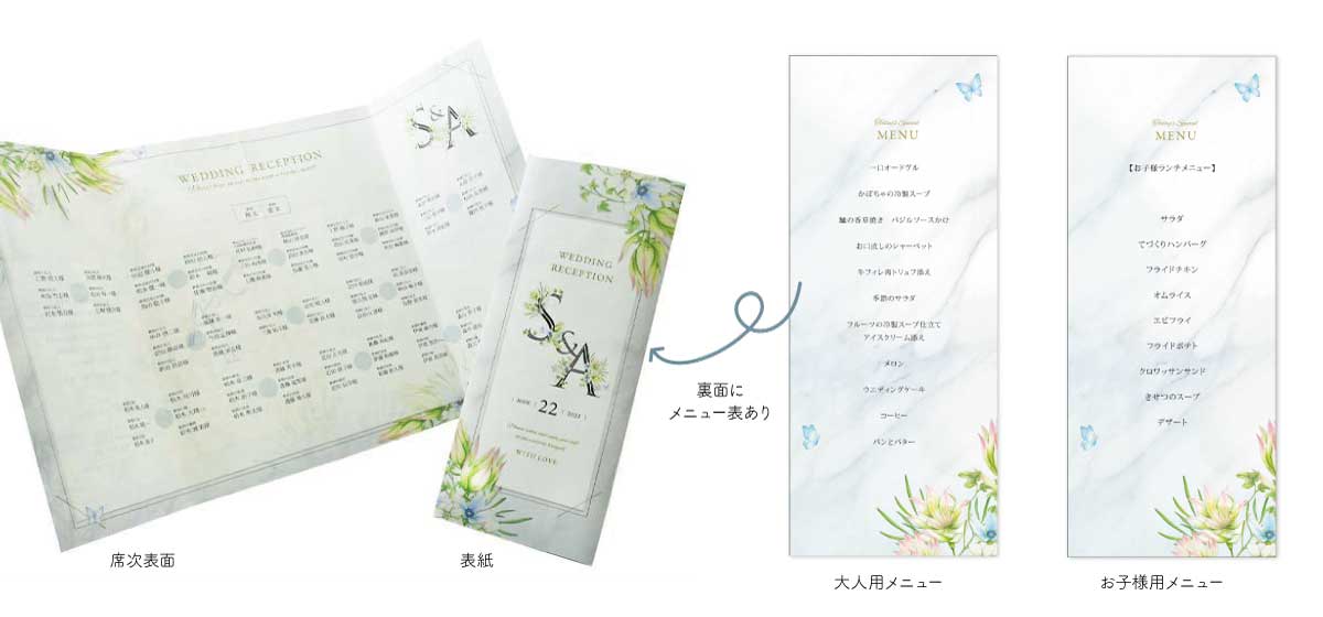 席次表とメニュー表が一緒になったタイプも沢山あるのですが イメージとして一例をご紹介。
