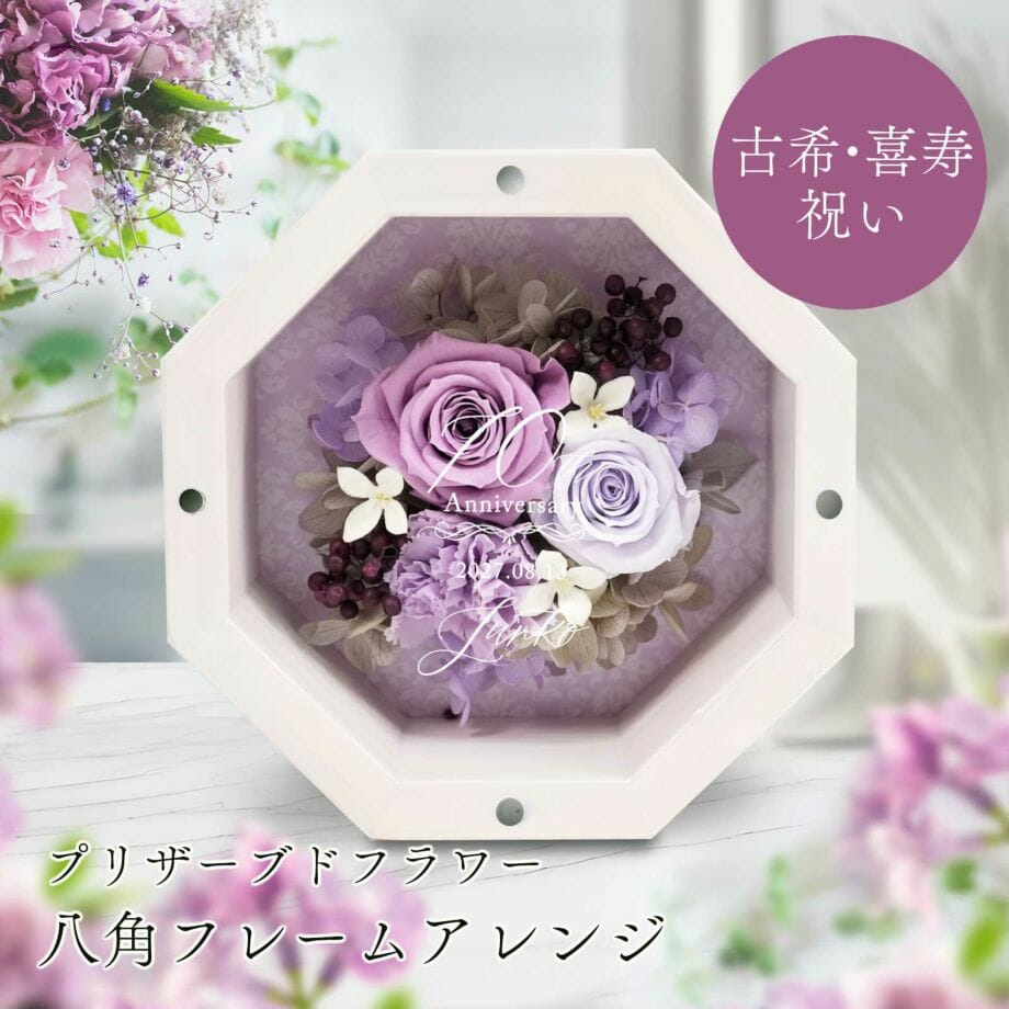 古希・喜寿祝いの贈り物!プリザーブドフラワー八角フレームアレンジ
