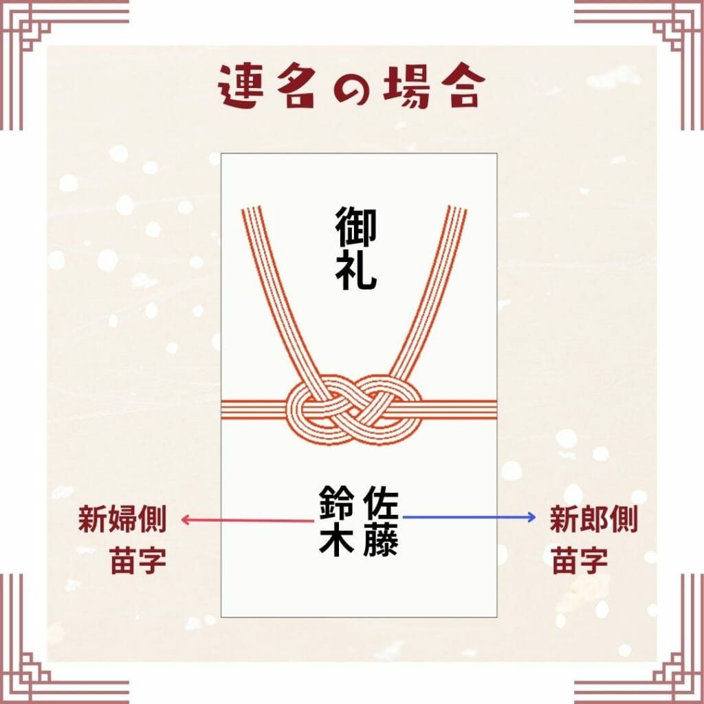新郎側・新婦側どちらにも交流がある方やお世話になっている方へ渡す場合は連名も可能😊