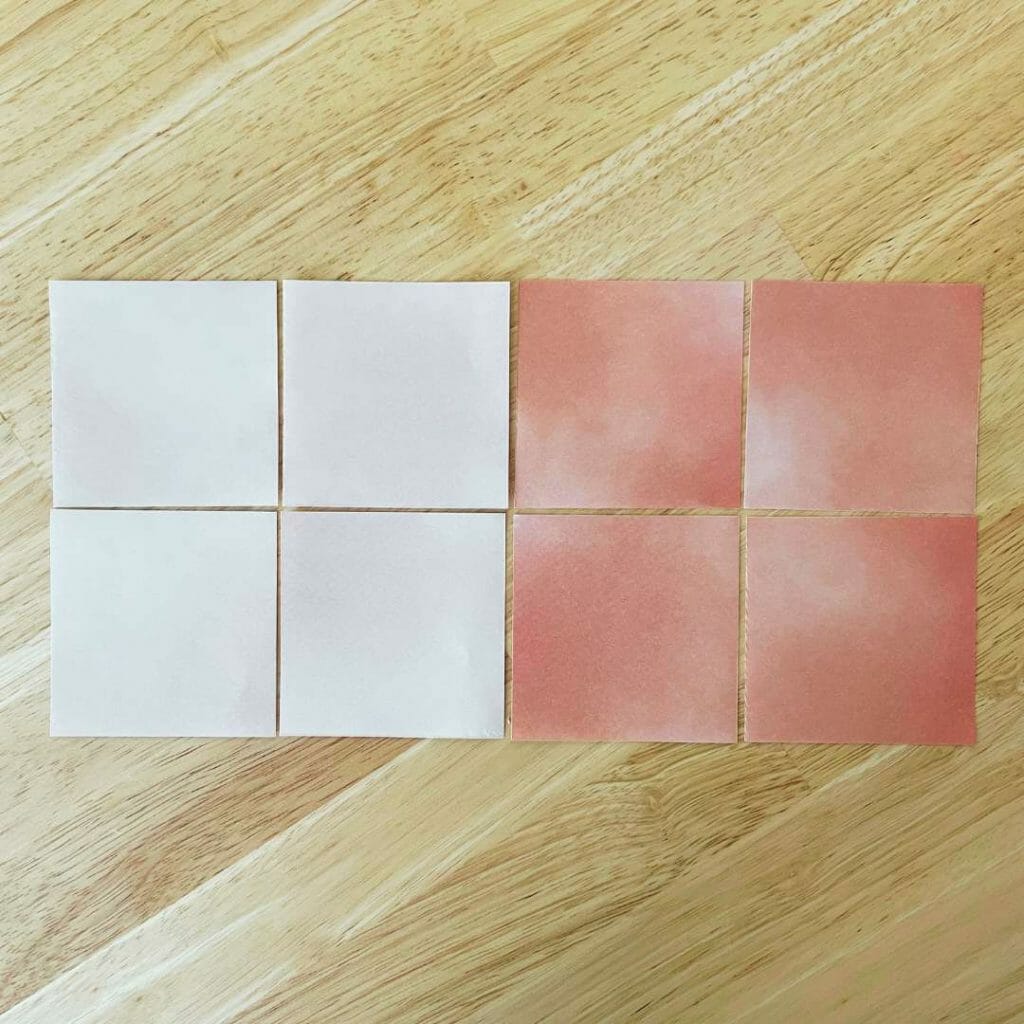 1.デザインペーパー(15×15㎝)を十字に4等分する