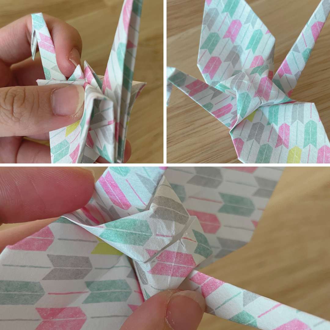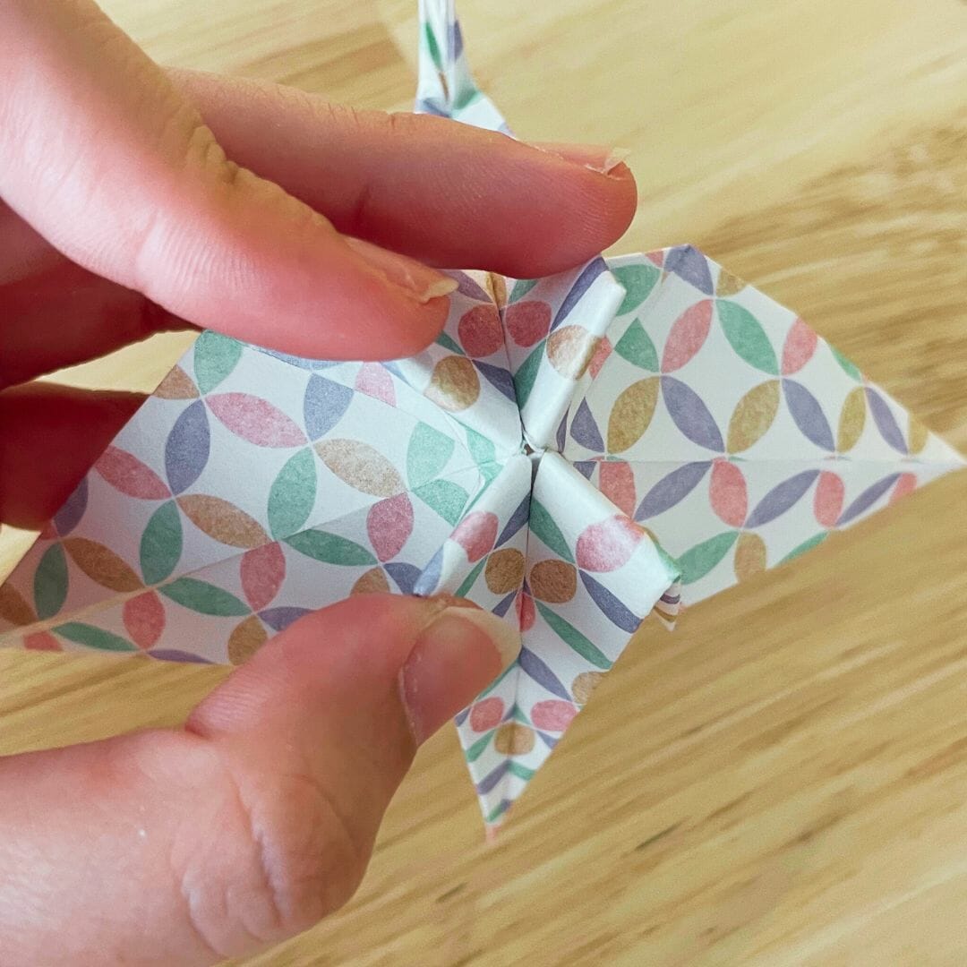 2.鶴の羽を広げる前に、背中の部分に切れ込みを入れる