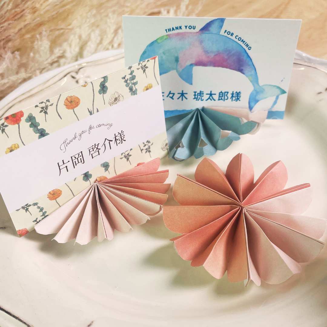 カード席札も種類豊富に取り揃えているので、カード席札をオーダーして飾り方のアレンジだけDIYしてもよし❤