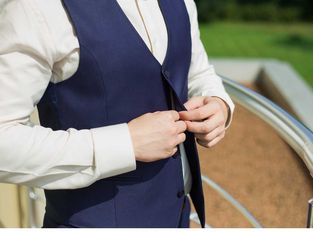 ジャケットを脱いでベスト姿にしたり、シャツスタイルにするだけでも印象チェンジ◎