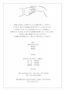 そもそも招待状とは、結婚のご報告とともに式の日時や場所をお知らせして、出席の有無を問うもの。