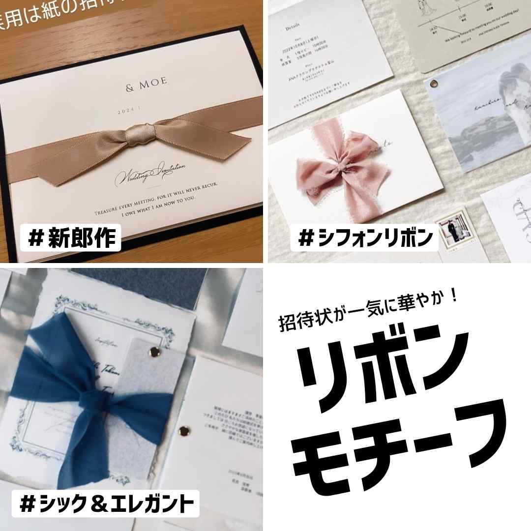 大きなリボンが特徴的な招待状もありましたよ!リボンの色や素材によって雰囲気がガラリと変わりますよね。