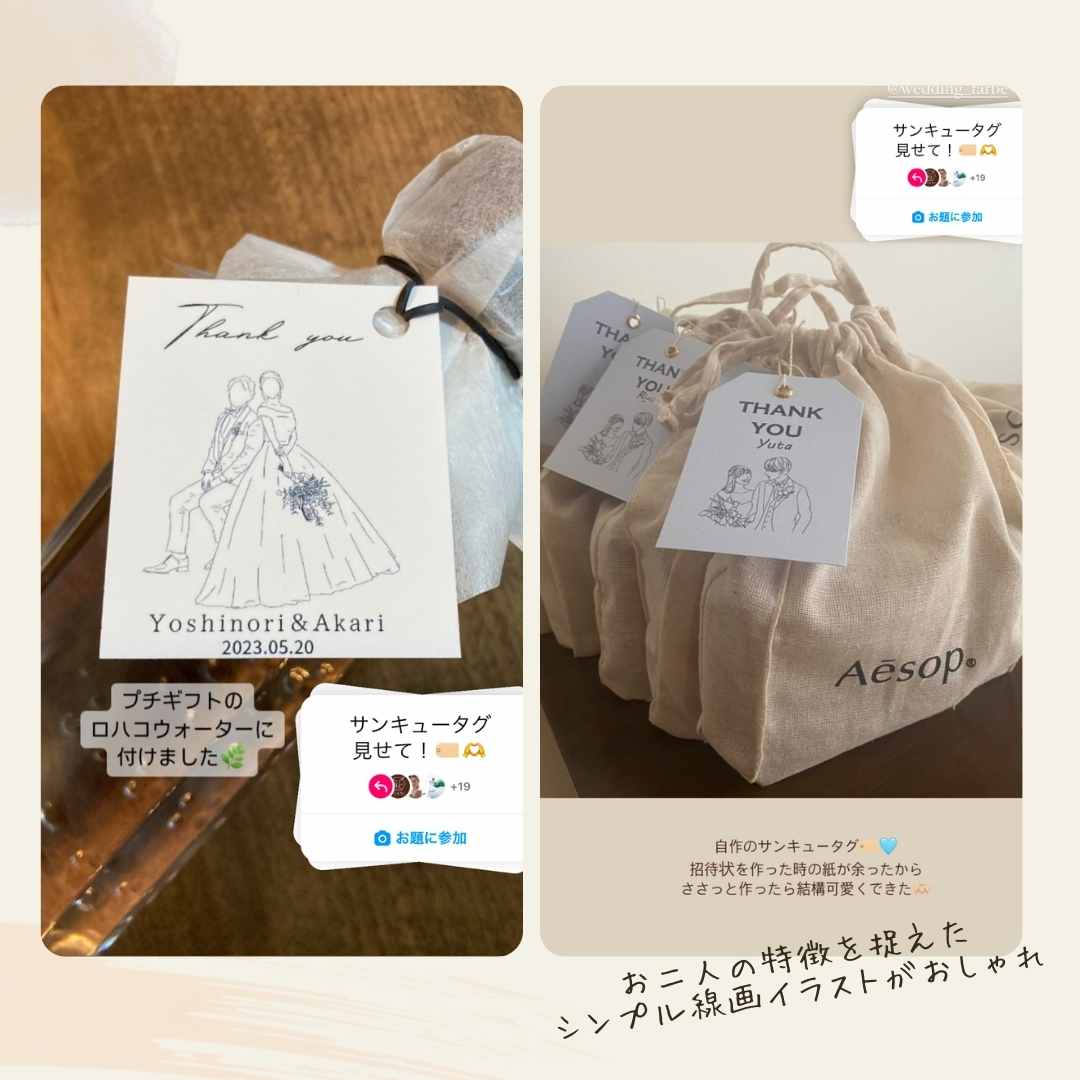 プチギフトにオリジナルサンキュータグを準備予定の方は、ぜひ参考にしてみてくださいね😍