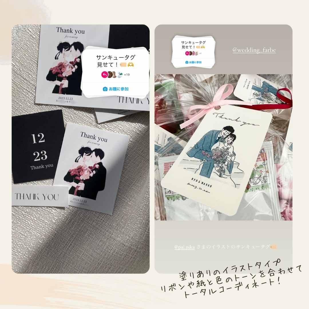 イラストや写真など、お二人らしさ全開のサンキュータグがたくさんありました!