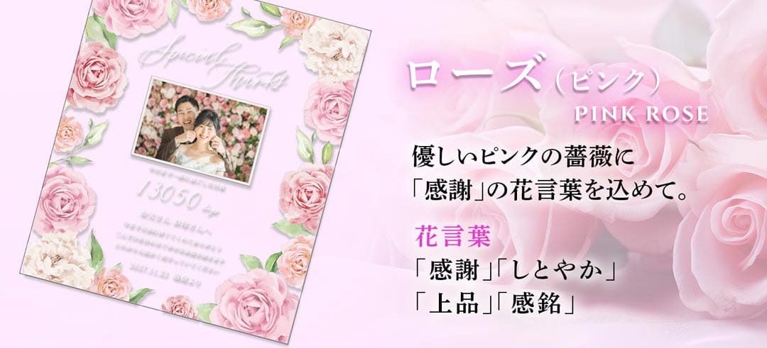 ピンクのバラの花言葉には「感謝」があり、感謝を伝えるギフトにピッタリです。
