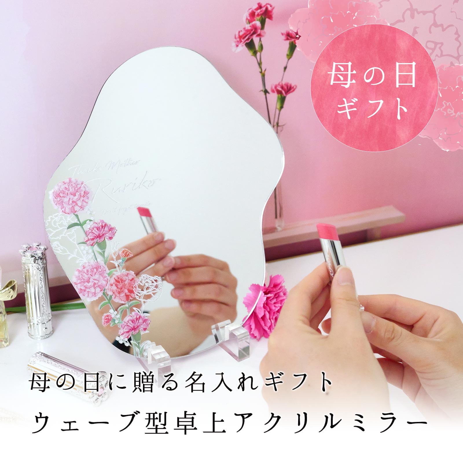《母の日に贈りたい》ウェーブ型卓上アクリルミラー
