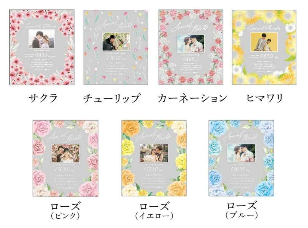 素敵な花言葉のカラフルなお花のデザイン7種から好きなものをお選びいただけます💐