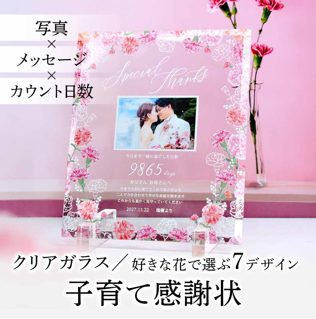 【母の日にも!】選べる7種のお花!クリアガラス子育て感謝状