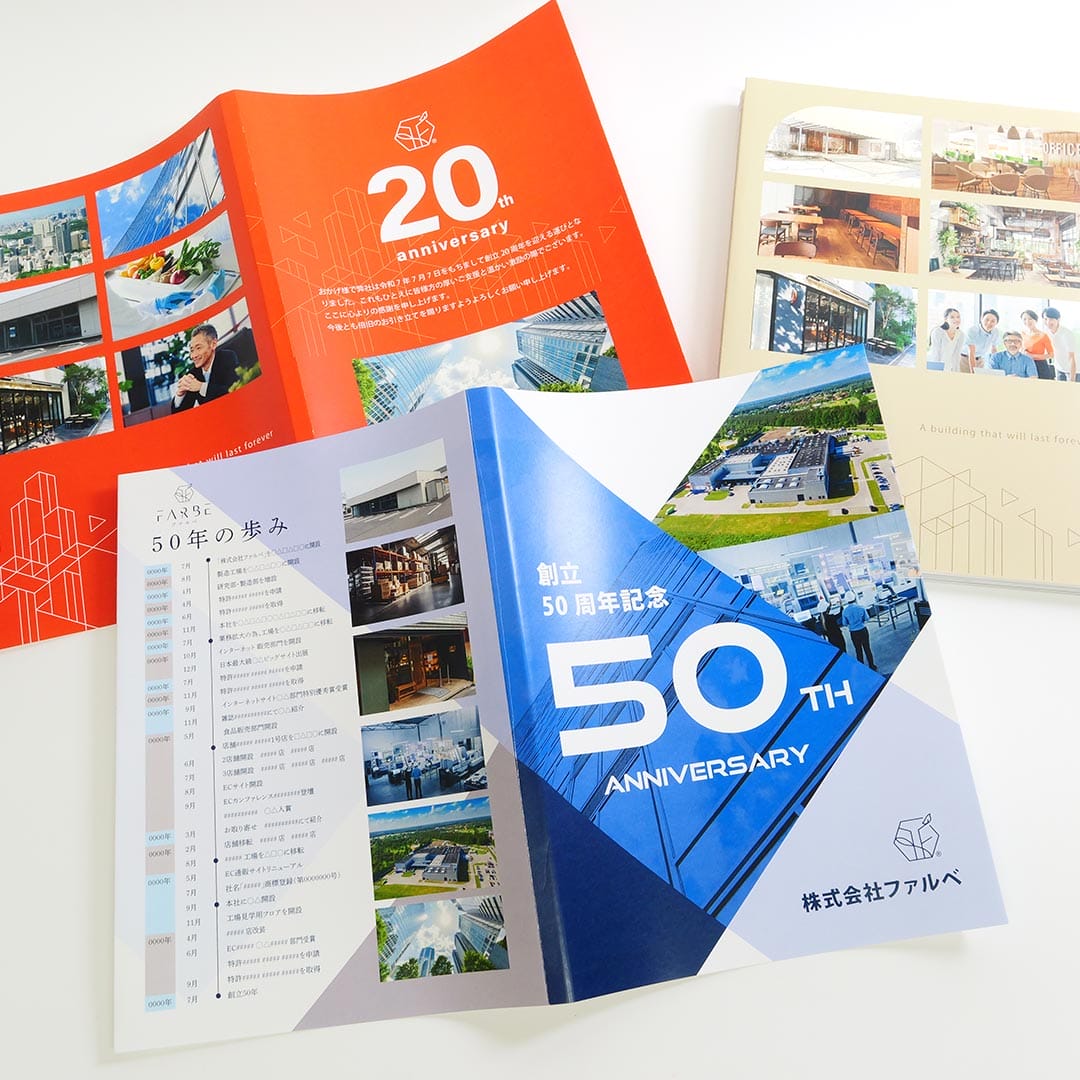 企業の周年記念パーティーの記念品として社史を載せたカタログギフトを贈ればご挨拶、感謝の言葉とともに企業の紹介も可能。