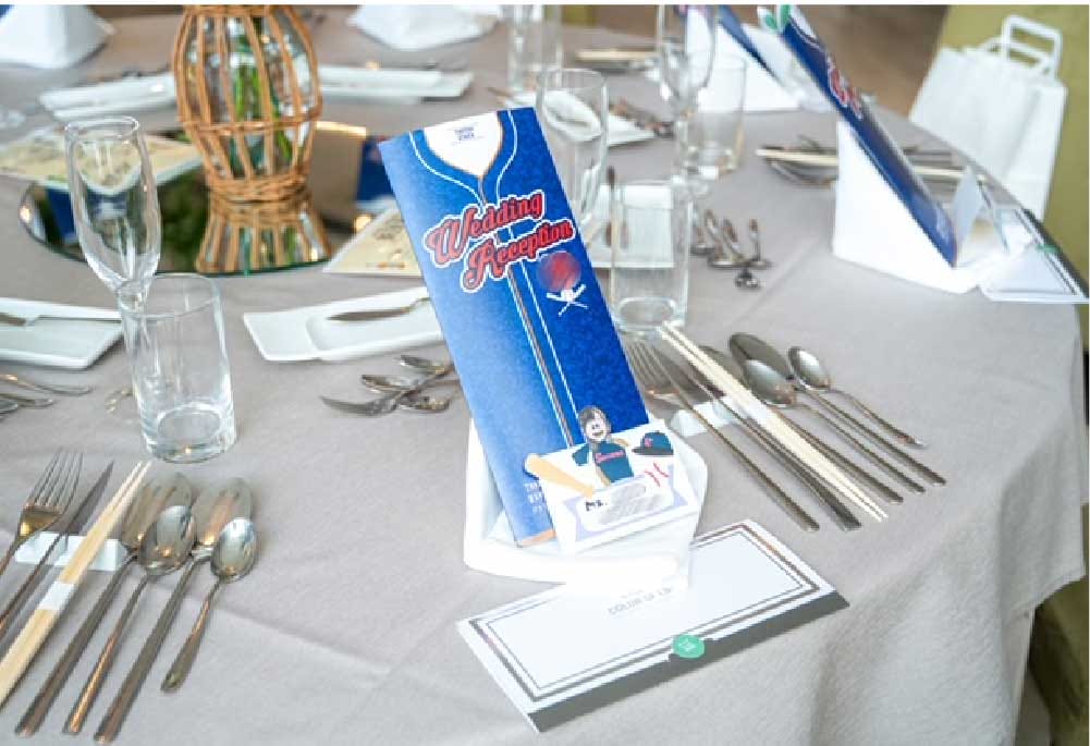 思い入れのあるチームのユニフォームで結婚式の席次表を作りたい!というオーダーメイドのご依頼でスタート。思いをカタチにするべくファルベデザイナーがディテールにもこだわって作成しました。