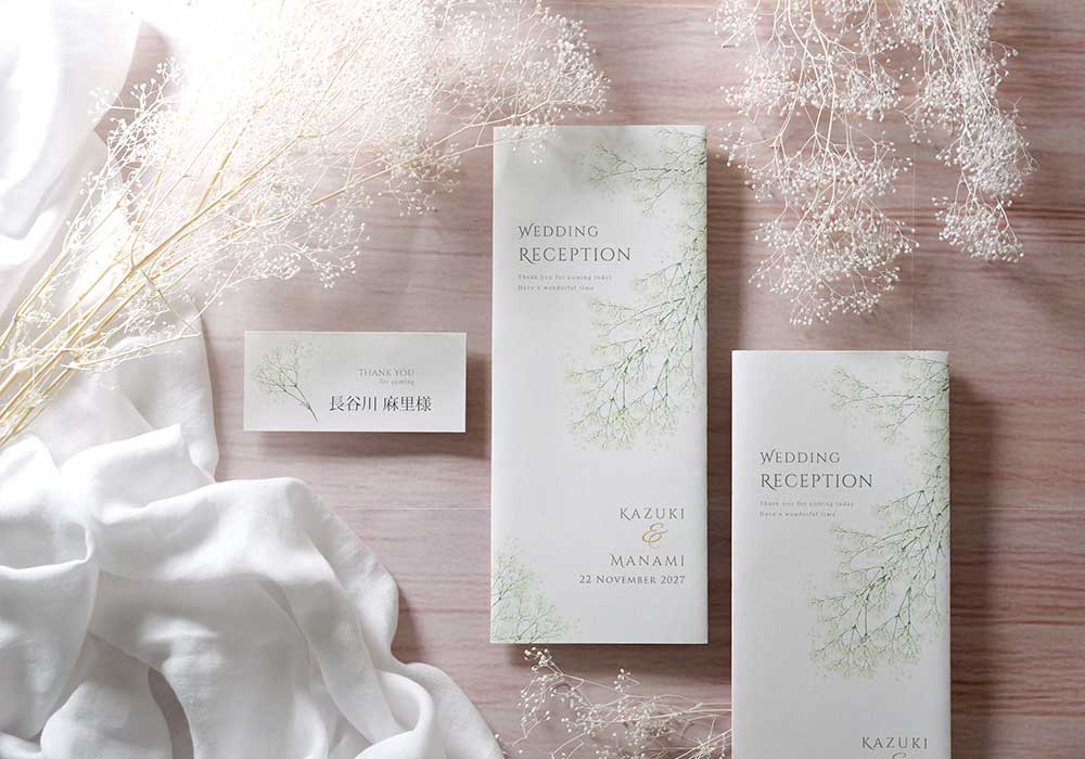 もはや結婚式定番人気、かすみ草。可憐でキュート、上品さも備わった最強フラワー。ナチュラルウエディングやガーデンウエディング検討中なら、こちらのデザインはいかがでしょうか?