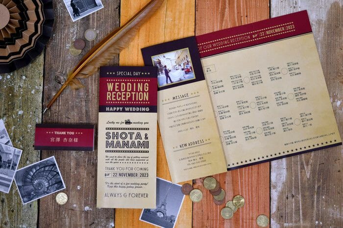 - 本日発売!シリーズで揃えたい!大人気チケット風招待状とおそろいの席次表・席札