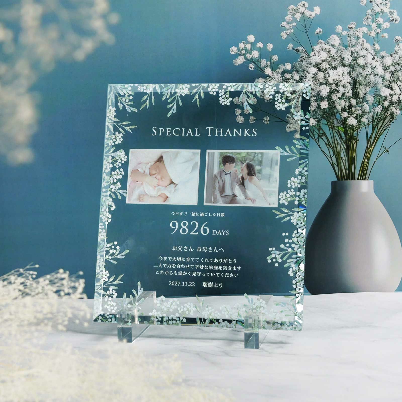 クリアガラスフォトフレーム子育て感謝状「かすみ草」