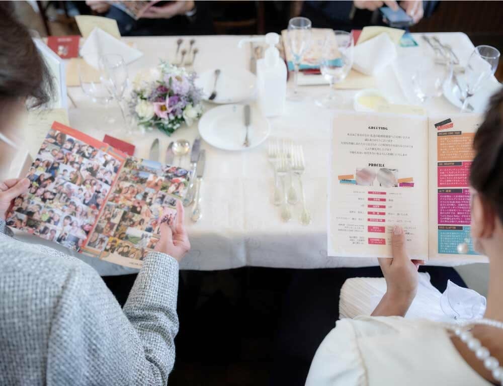 N様:ゲストの写真たっぷりのページはやはり皆さんよく見ていたようで、エンドロールムービーやカメラマンからの写真データの中にも、それぞれがそのページを見ながら会話をしているシーンが多く、こだわって良かったなと思いました。