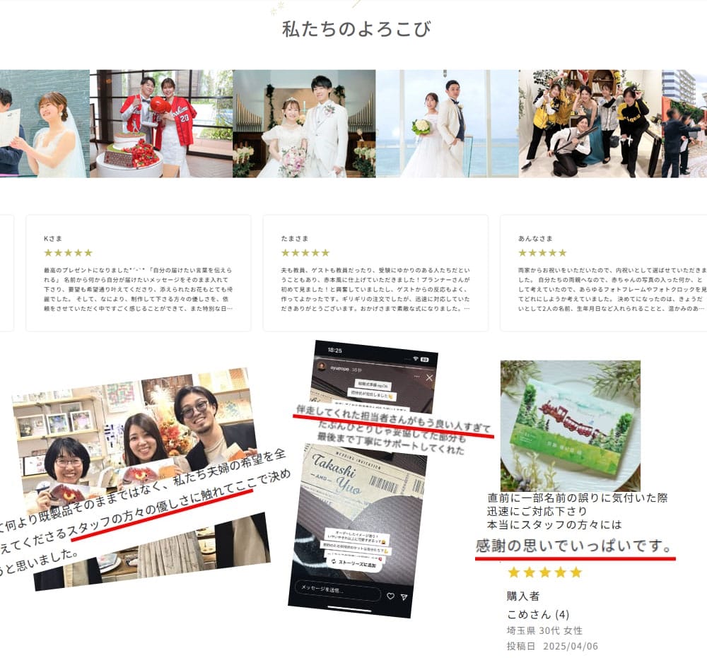 これまで作成した過去の事例をチェックしながら、二人らしいプロフィールブックを考えてみて!