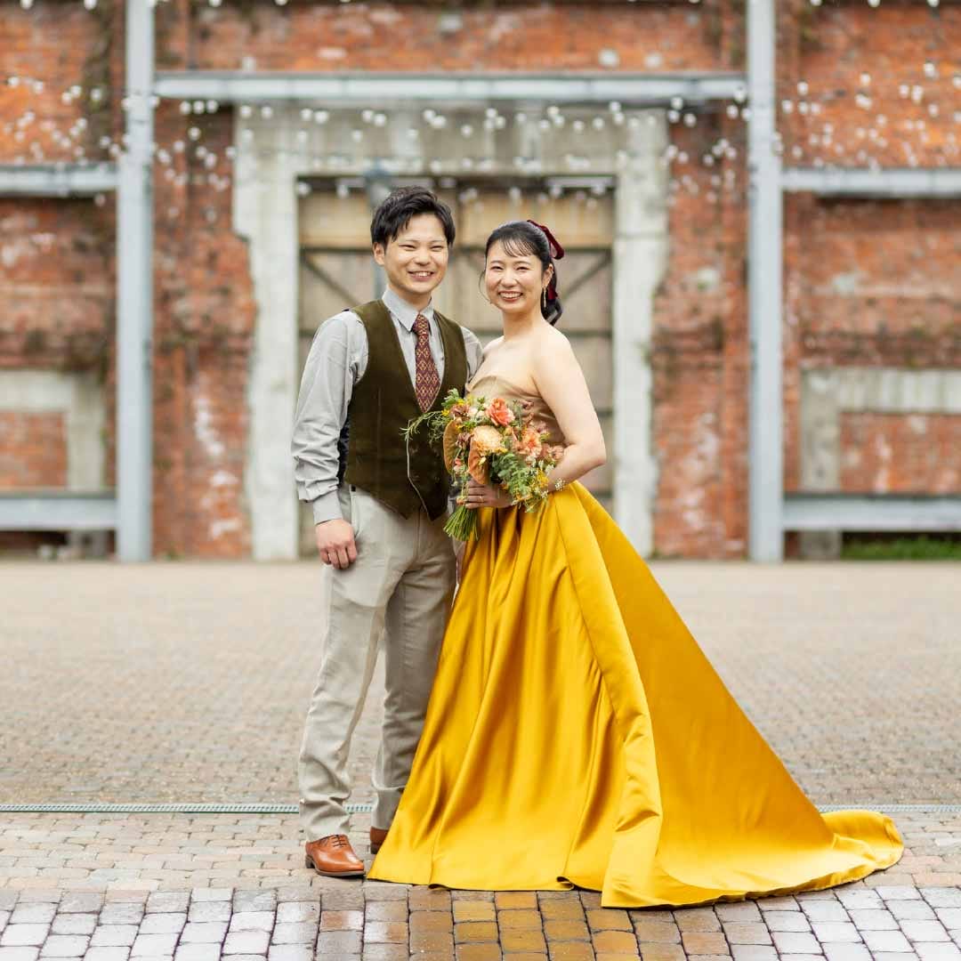記念撮影も愛車たちと一緒に──赤レンガ倉庫のクラシカルなムードとも相まって、とても素敵なワンシーンに。