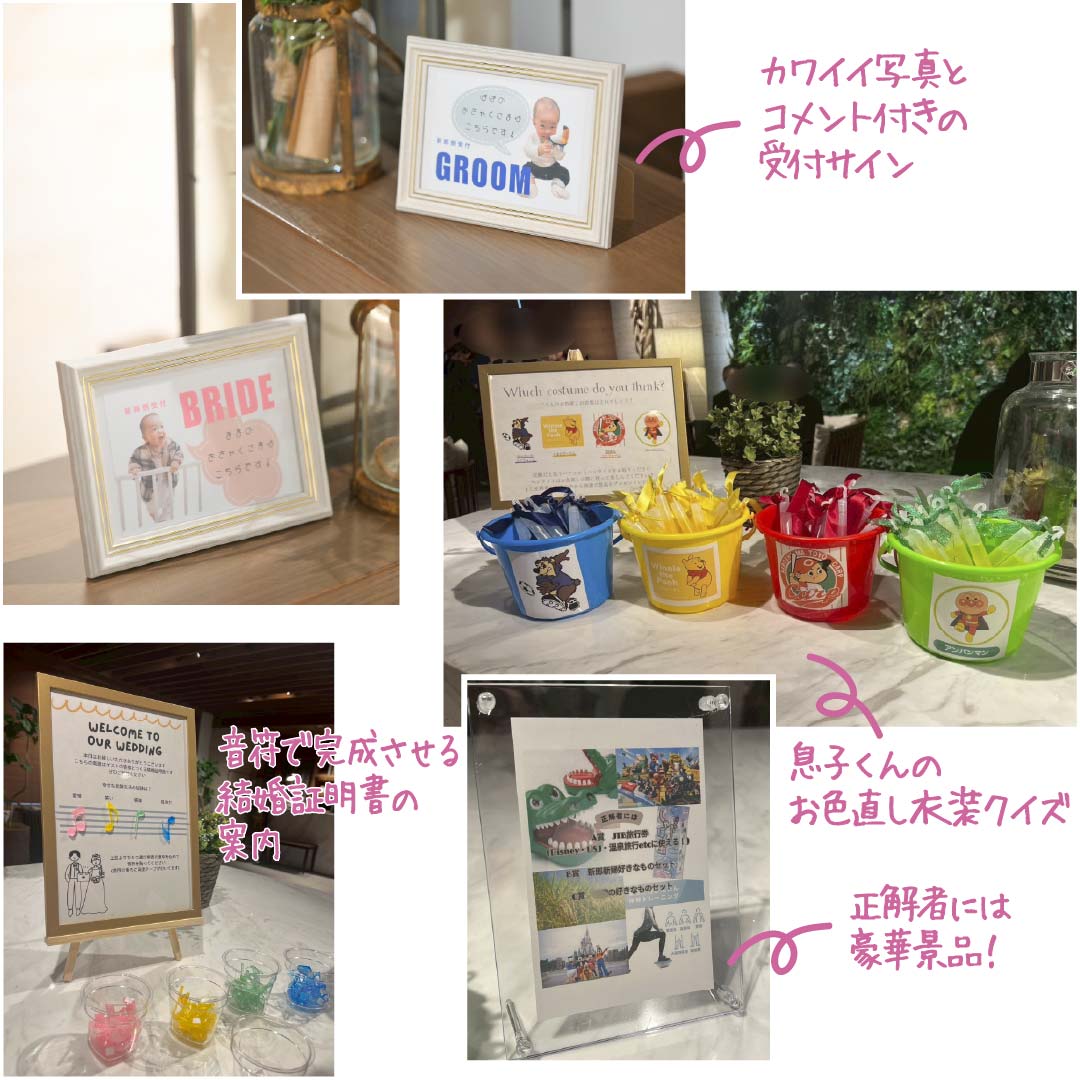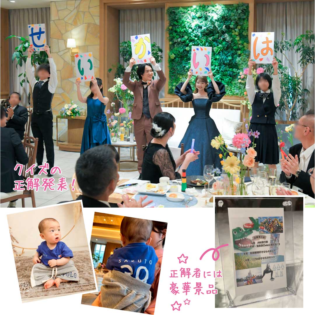 ファミリー婚ということで、この日は息子くんのお披露目もかねて、Sくんのお色直し衣装クイズを開催!