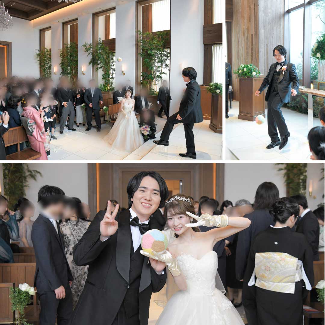 今回はなんと、息子くんの大好きなおもちゃのボールを使って、新郎様によるサッカーボールトスを実施!