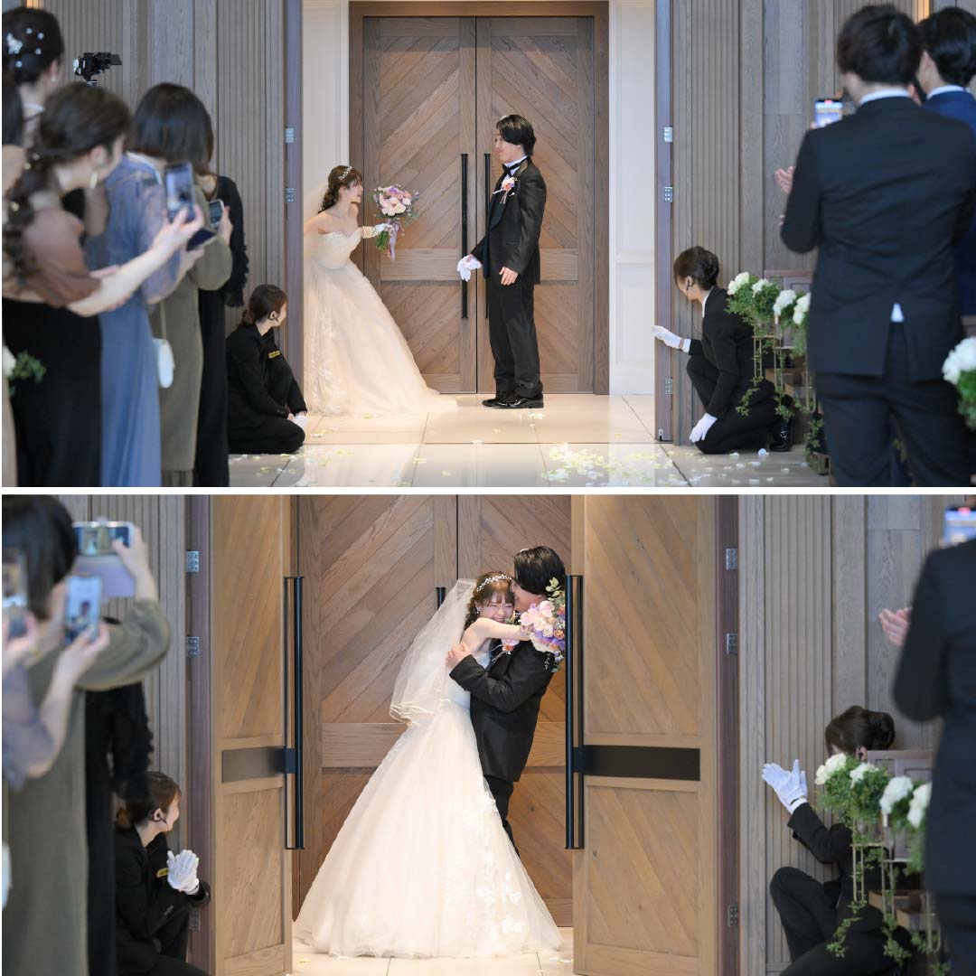退場シーンでは教え子ちゃんたちのお出迎えに新郎新婦様が大感激。