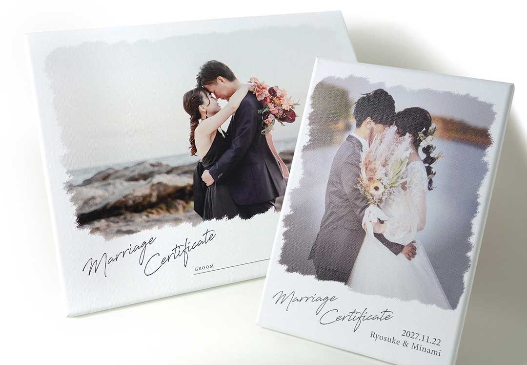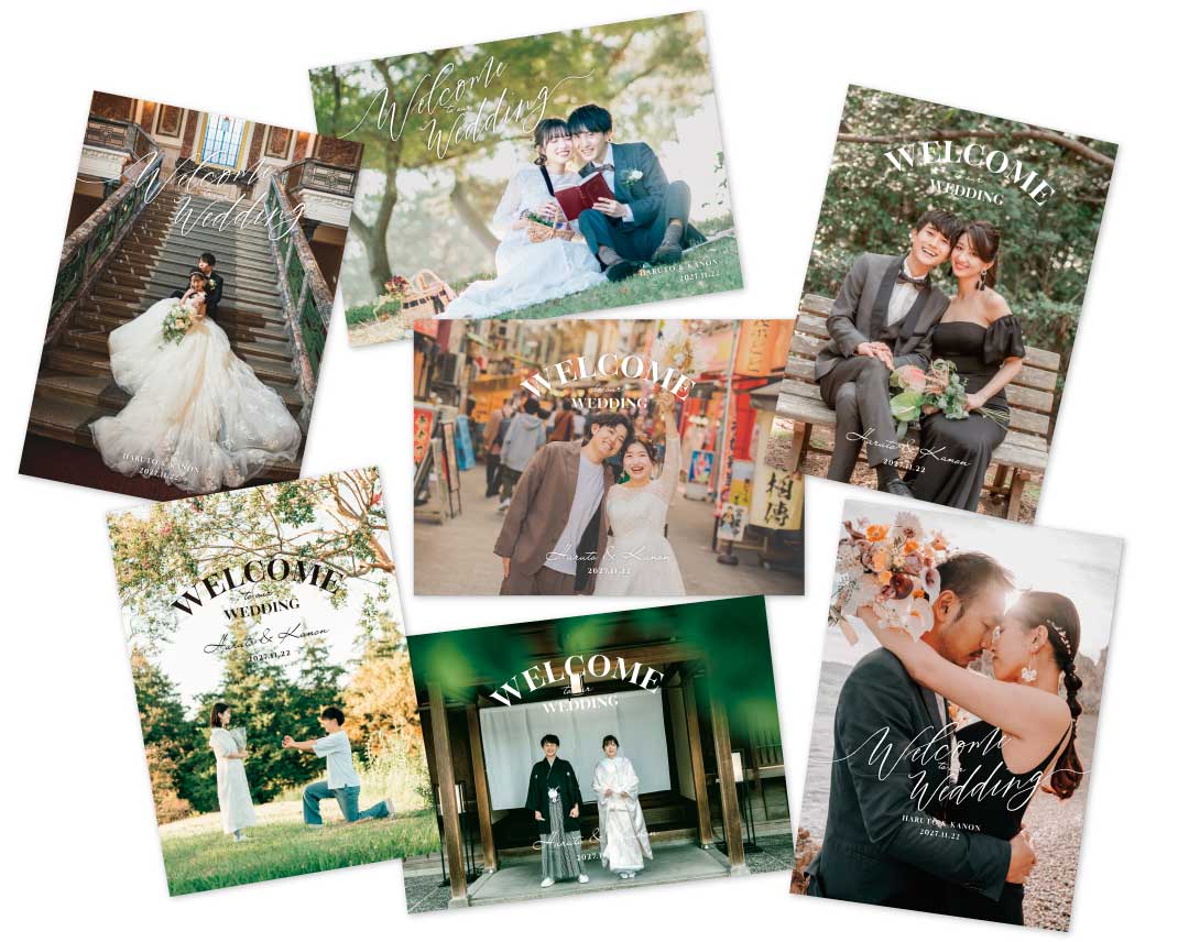 ウェルカムボード or 結婚証明書 と選べて、サイズも2種類あるので お好きなタイプでご注文いただけますよ!