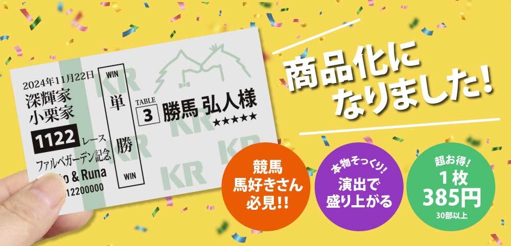 人気のため、馬券風席札(エスコートカード)は商品化もしているので、気になった方はチェックしてみてください!