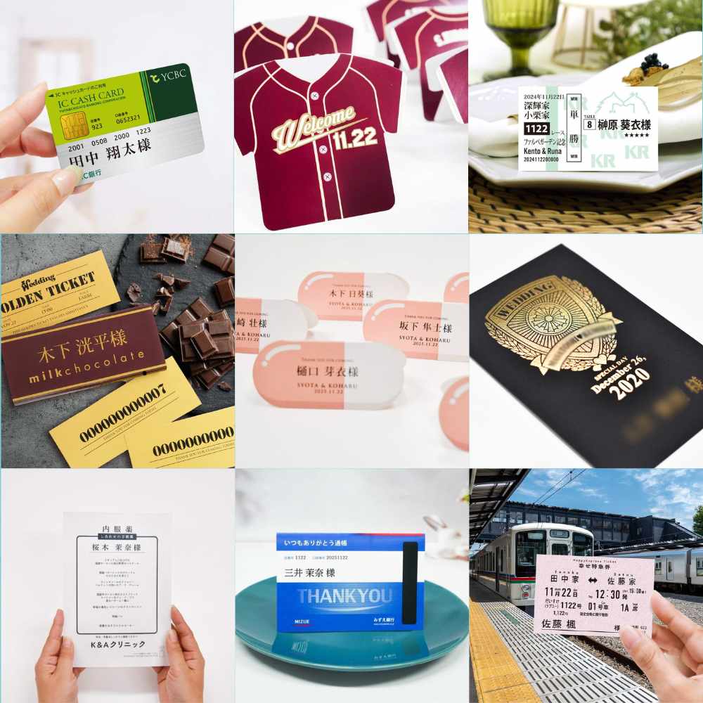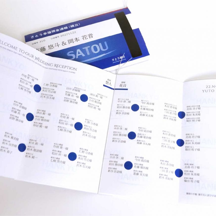 通帳型席次表とセットお作りするケースが多く、通帳とキャッシュカードのW揃えでゲストをおもてなしです。