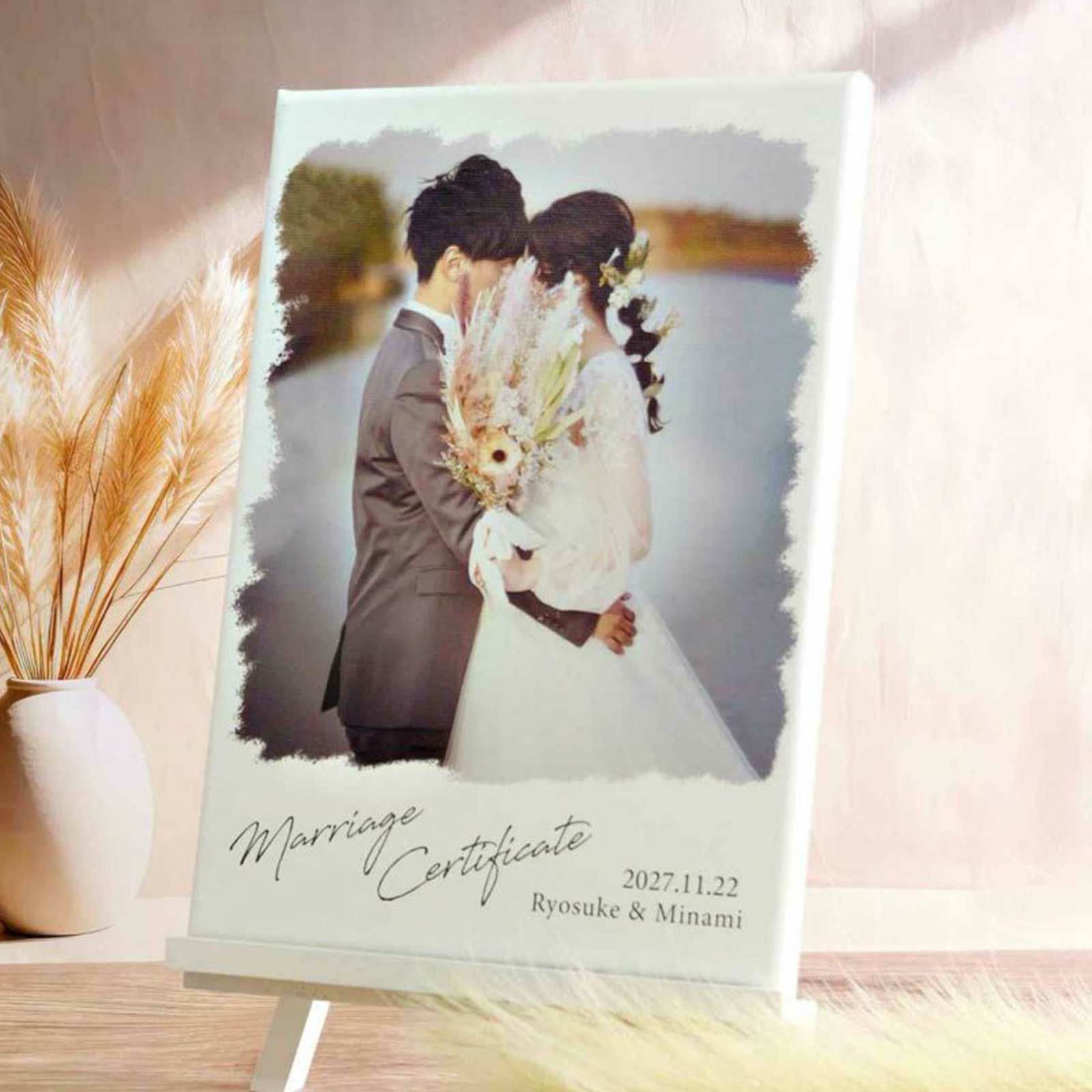 しっかりとした作りのキャンバスで、おふたりだけのオリジナル結婚証明書として特別なアイテムになりました。