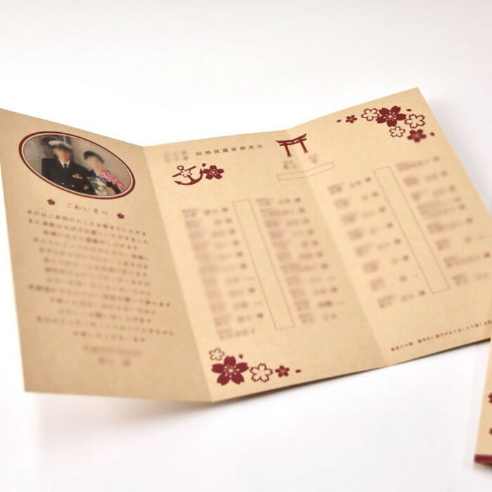少人数ということもあり席次表はA4のコンパクトサイズ。さらに三つ折りにした3面のうち2面をつかってゲストが座るテーブルを配置しました。
