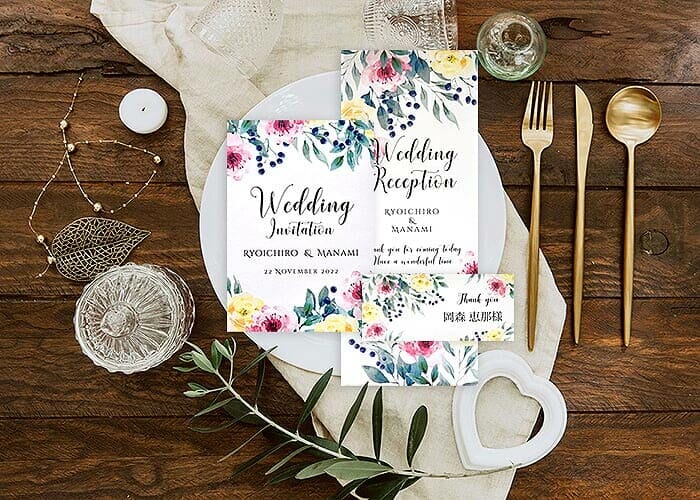 招待状、席次表、席札と同じシリーズでそろえることができるので、気軽にトータルコーデを楽しめるのも魅力のひとつです。