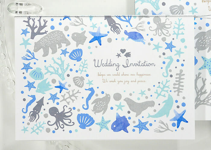 ペンギン、あざらし、サンゴ…水族館みたいにわくわくする招待状DIYセットです。