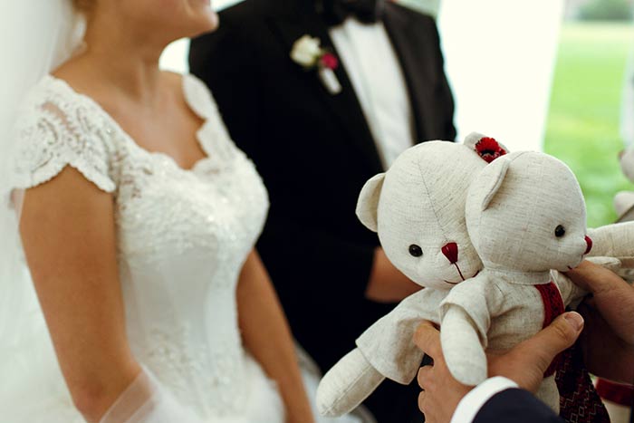 生まれたときの体重と同じ重さに作られた、くまのぬいぐるみなどのことを「体重ベア」といいます。披露宴のクライマックスシーンである両親へのプレゼント贈呈の際に贈られるアイテムの一つです。