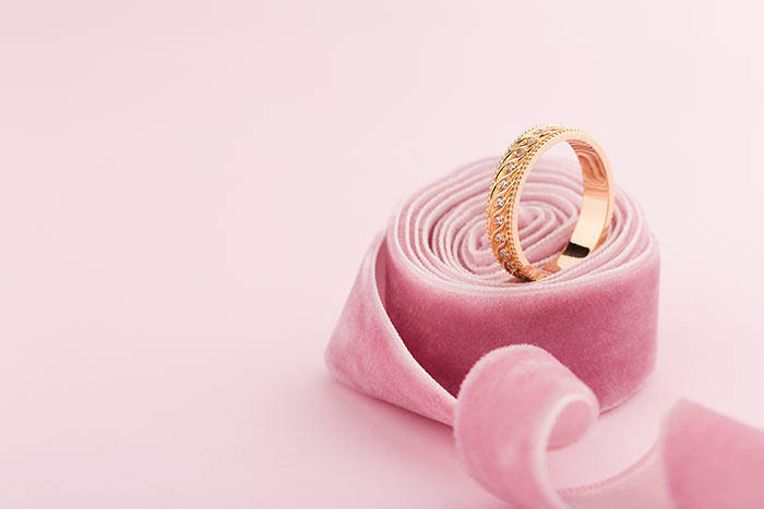 ベルベットのような少し厚みのあるリボンをくるくる巻くだけで、リングピローに早変わり♡すぐ真似できそうなアレンジです。