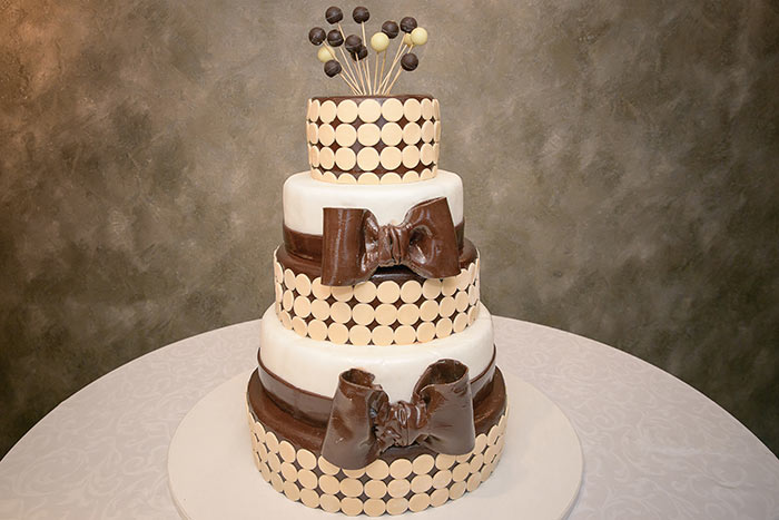ウェディングケーキをチョコレートのリボンでデコレーション♡ここまでこだわってリボンでトータルコーデすれば、ゲストもびっくりですね!