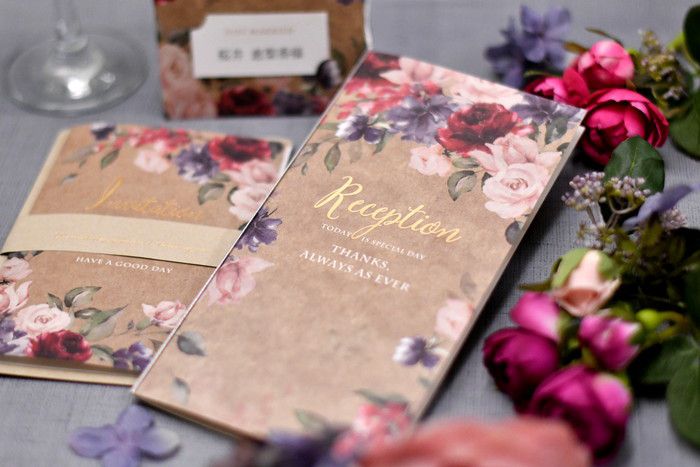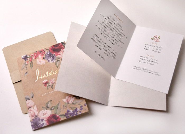 実はこれ、招待状の角丸カードはクラフト紙だけど、バラがデザインされているこれらはクラフト紙ではないんです。
