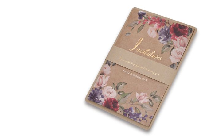 クラフトと相性のいい色味を抑えた花をあしらったデザイン。