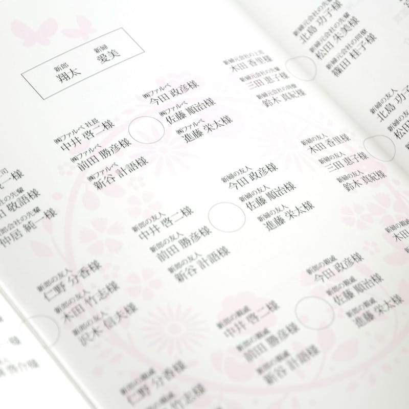 招待状の返信が集まったら、家族(両親、兄弟姉妹)/親戚/主賓/上司/同僚/友人などにグループ分けしましょう。各グループに何人ずついるか頭数を把握しておくと便利です。