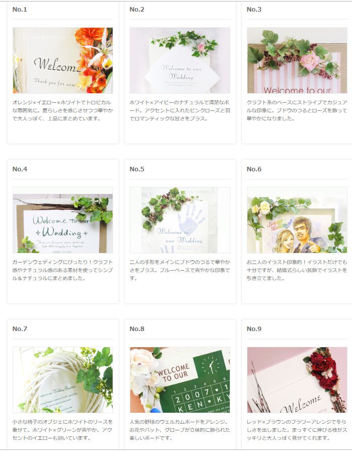 お二人が最初にチェックいただいたページがウェルカムボードセミオーダーのページ。
