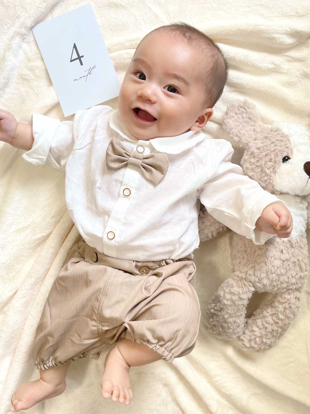 4か月目の月齢ショット、おめかししてる姿が可愛すぎです♡