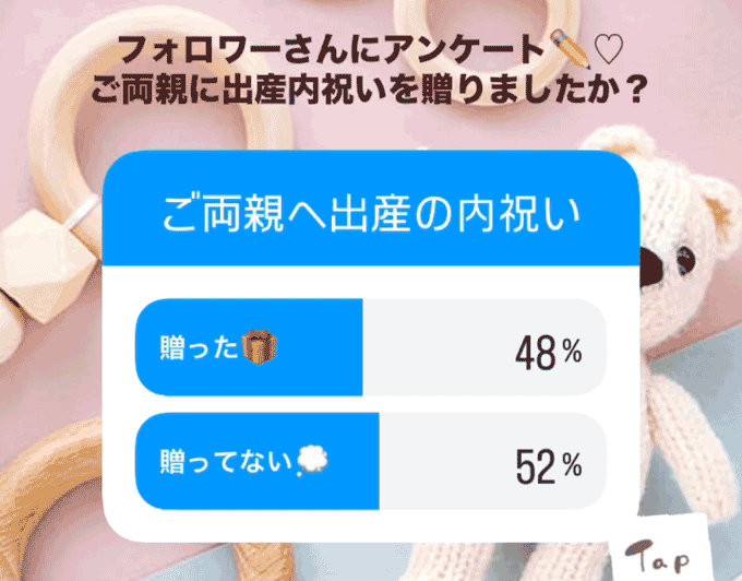 では、実際に世のパパママはご両親への内祝いを贈ったのか公式インスタアカウントでおこなったアンケートの結果がこちら。