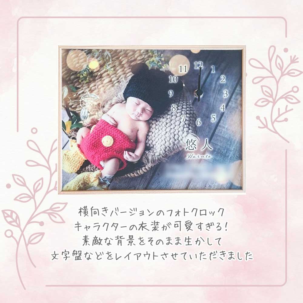 キャラクターのお衣装が可愛すぎる♡素敵な背景をそのまま生かして文字盤などをレイアウトさせていただきました!